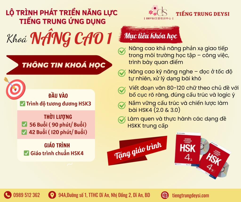 – Phát triển toàn diện 4 kỹ năng: Nghe – Nói – Đọc – Viết, sử dụng tiếng Trung linh hoạt trong hội thoại thực tế.
